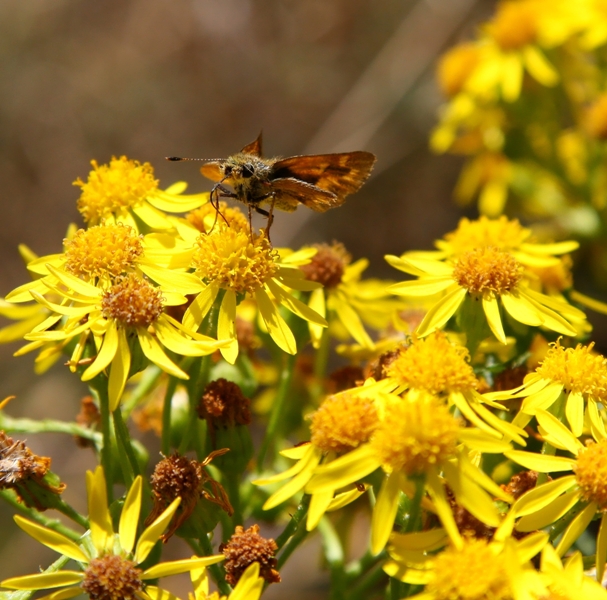 I spied their lushes yellow in the afternoon sun. Like a bee to nectar, I made my way over to their small brilliant blooms. I started to shoot, carefully framing, pausing and framing again. Wait a minute. Who is this? Ah, a beautiful moth has come by to say “hello.”