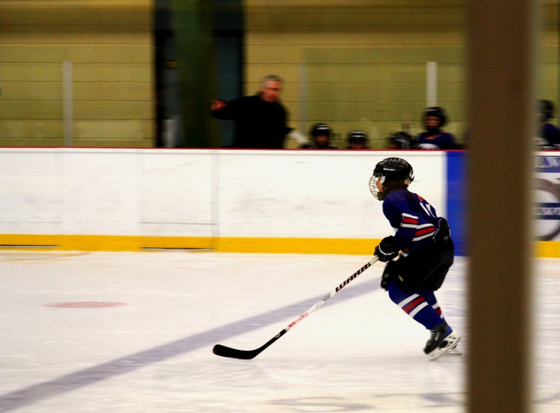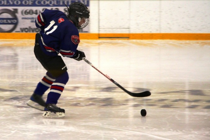 The beaver, maple syrup and hockey are three symbolic references that shout Canada to Canadians and not necessarily in that order. Hockey almost always comes first. There is the Hockey Canada Network. There is the National Hockey League with a website where up to 40 games are shown live each week. There are shirts, mugs and I am sure even pajamas you can get to support your favourite team. Hockey fans have no particular age or gender. From the very young to the very old, Canadians, at the very least indulge the most enthusiastic fans even if they don’t follow the game themselves.  I am in this category – the indulging category. Though I admit to watching the men’s Olympic gold game last year, I know nothing about the stats or the personal lives of the players. It was the last game I had seen until last weekend when I took my camera to a game in Port Moody to try my hand at capturing one young eight year old defenseman in action.