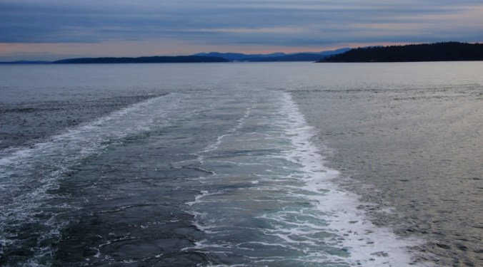 Ferry Wake at Dusk.
