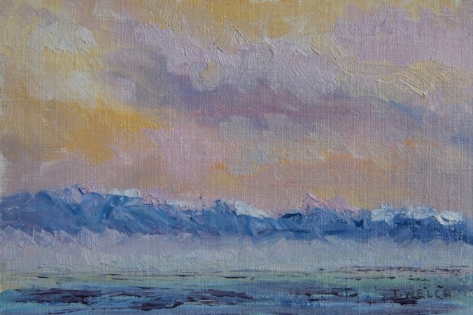 10 thoughts on “WEST COAST SUNRISE postcard painting by Terrill Welch