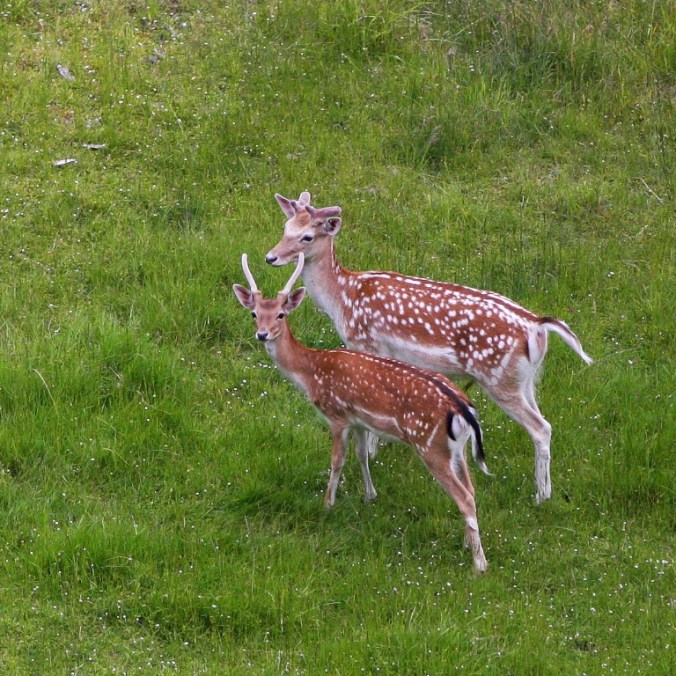 We had a nice surprise visit late yesterday afternoon on the valley floor below our house. These two buck Fallow Deer stood long enough for me to photograph when we whistled at the them. You may wonder what European Fallow Deer are doing on Mayne Island off the southwest coast of Canada and it is a good question. Sometime in the 1990’s they were brought here to farm and eventually a few got away which has led to the foreign immigrants becoming wild inhabitants on the island. Though they are extremely pretty they are not favoured by locals as they compete with the native deer for limited food. They are also much more fearful and wary. This is the best photograph I have been able to get in five years. Enjoy!