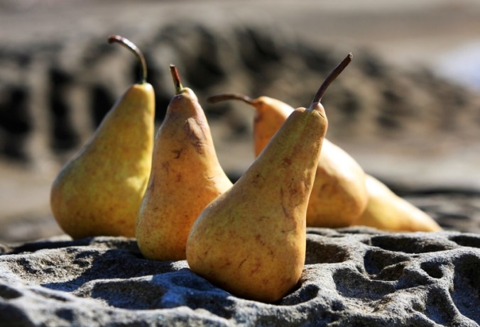 Well, one day not too long ago I got to thinking how the lovely pear has been painted and photographed for what seems like forever. They are a powerful symbol of abundance, cultivation or agriculture and culture. I want to marry them – at least for a while – with the sea because the sea is, at least for me, a symbol of eternal change and continuity. My desire is to go more deeply into our human relationship to our environment. A study of pears by the sea seems like a good place to start as any.
