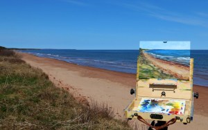 Standing on Dalvay Beach cliffs plein painting PEI by Terrill Welch IMG_3869 May 15, 2016 / Terrill Welch