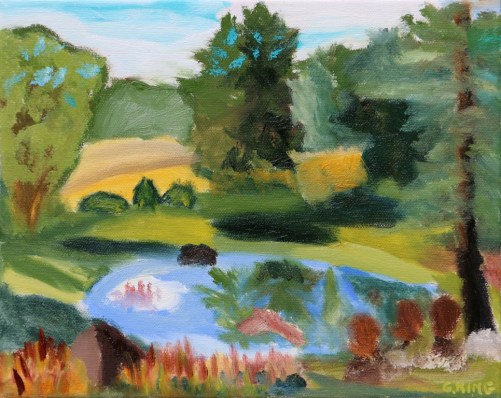Elspeth Westby – My focus has been to learn how to use the oils (I chose to use walnut oils by M. Graham and Co.), the different brushes and tools and become comfortable with an easel with the hope of doing “en plein air” painting. I really enjoy spending time observing my environment and long to paint it. To my surprise and delight, I love the oils and seem to be managing landscapes!