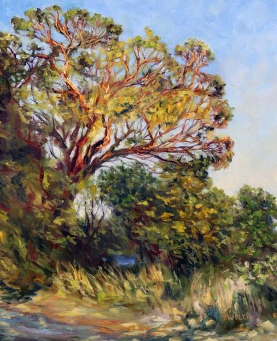 Arbutus Tree with a View 8 x 10 inch acrylic study on gessobord