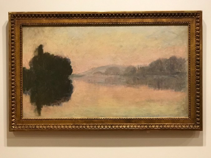 The information card tells me that Monet completed twenty paintings of this bridge and the body of work is among his most abstract. These later works often show bare canvas in places along with these free loose and large brushstrokes. Would Monet consider the paintings finished? I believe so simply by looking at the continuation of his work during this period of his life. However, these works were in his own personal collection. They were never sold. So it does beg the question of whether he was unsatisfied with them and so didn’t put them up for sale or if he made a decision to keep them for his own appreciation.