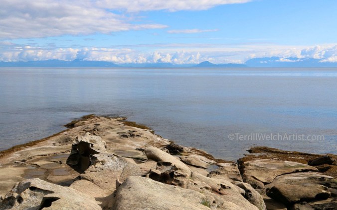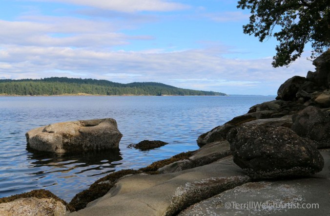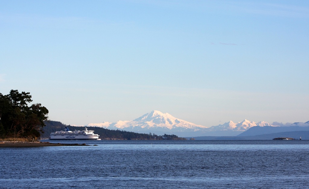 I turn and look back towards Swartz Bay knowing that one of the large ferries taking passengers across the Strait of Georgia will likely be visible.