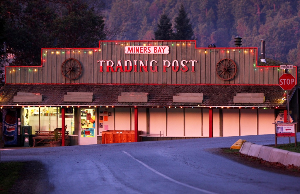 My sweet husband has a few groceries he wants to pick up before we go out for dinner. We unload everything but my camera and head immediately for Miners bay. There is only a slight orange glow left in the sky as we pull up and part on the street facing the Miners Bay Trading Post.