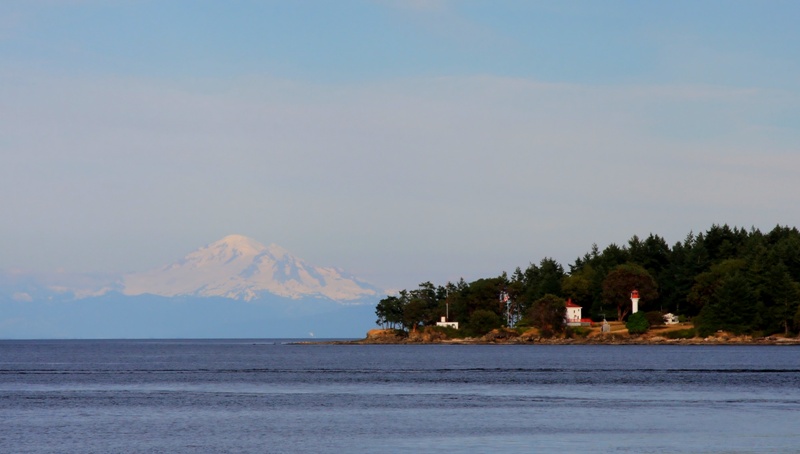 Ah yes. One more stop at Galiano Island while I admire the Mayne Island lighthouse with Mount Baker looming in the background.