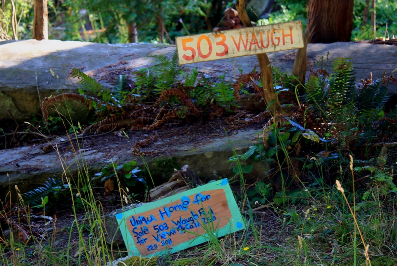 It is not the usual”for sale” sign we park beside. Annette’s young children have painted all the signs and posters that have been posted around the island. It has been one of their contribution to this creative family restoration project.