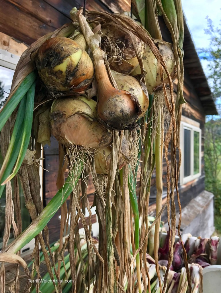 Past the onions drying for winter.