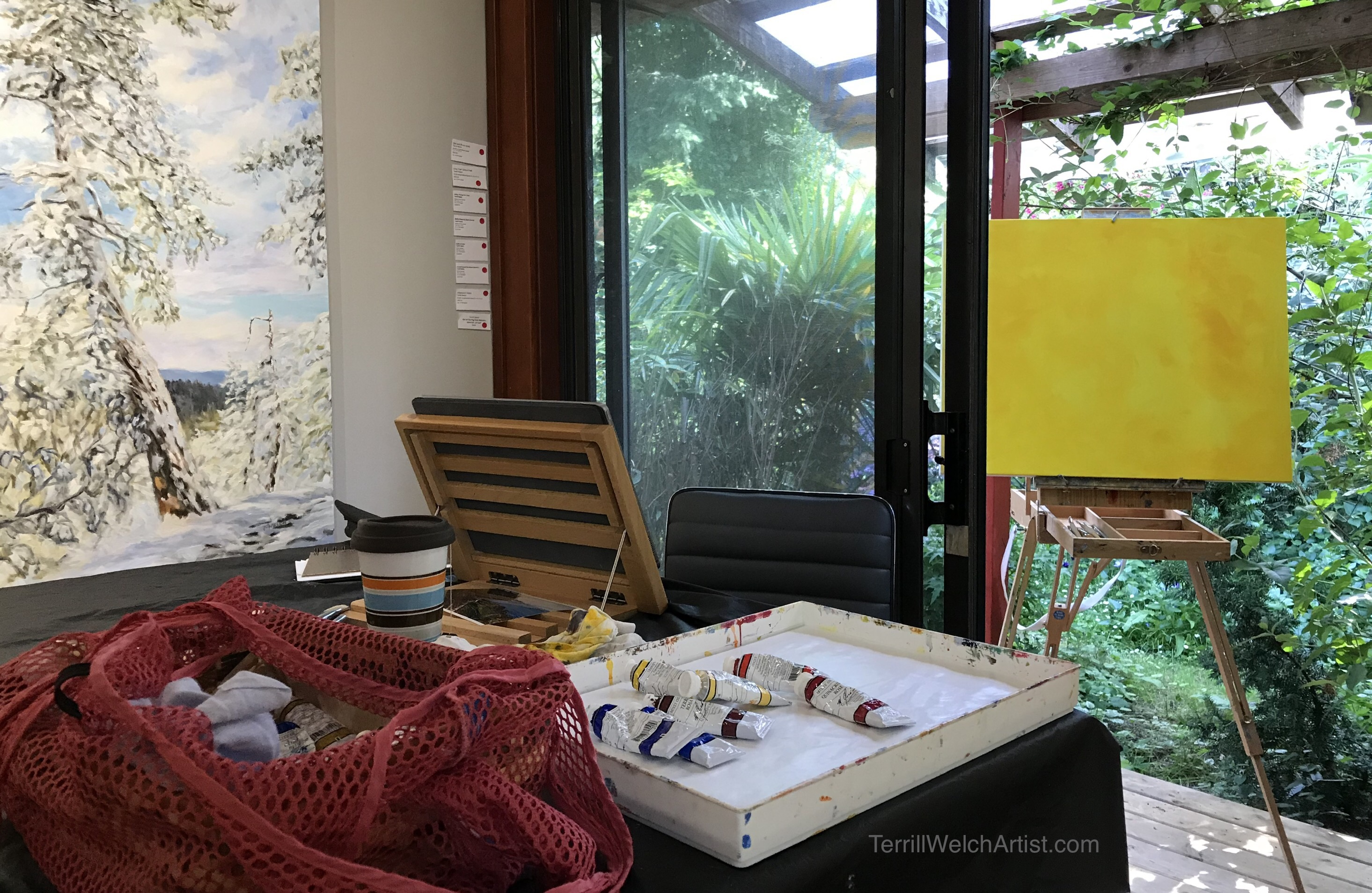 I do not expect to be writing a post here everyday even though it will happen at times. I thought about setting a specific schedule and decided it wasn’t necessary. I am fairly good about documenting my work process which includes hikes, walks, reading about art and art history, watching art videos as well as painting. I have been doing it for years now. Some thoughts and activities are gathered into “A Brush with Life” newsletters and some will only be shared here. Creative Potager is my everything-out-on-the-tables-and-counters kind of working space. Thoughts and musings are mixed in with my commentary and missteps. I tend to need to document my process to some degree so that I can let go and have room for new ideas and new learning. It is just my way of being in the world. I suspect at times that my ramblings will make little sense at all and at other times, you will be comfortably nodding at my shoulder. Either way, this missives will be a touch point for starting to understand the paintings that come off of my easel.