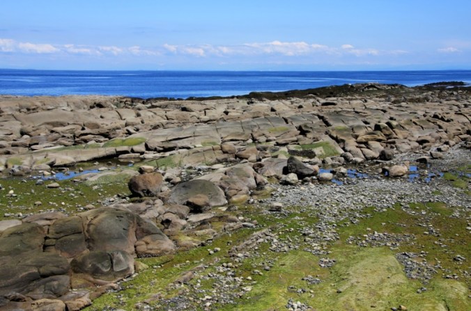 Wandering along the shore I consider the path down to the rocks and driftwood.
