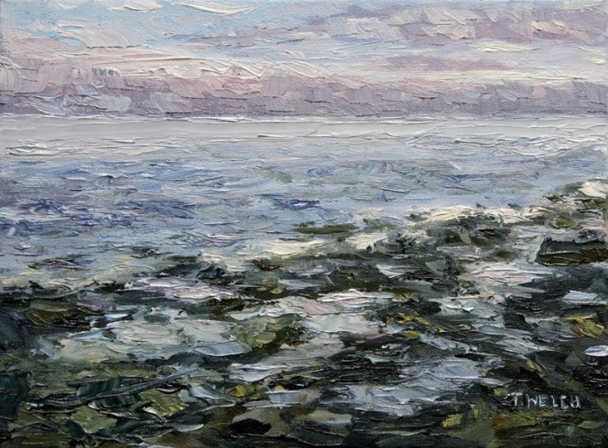 Then later on in the week the jade of high-tide seas remind me of some reference material from earlier in the year. I bring them along to the first Studio Intensive oil painting class that I am teaching for the next three months. I am enamoured by melancholy seas. I can’t seem to help myself. I am pull up to the shore with a belly full of compassion, ready to dry each of the wave’s cold tears on my damp sleeve.