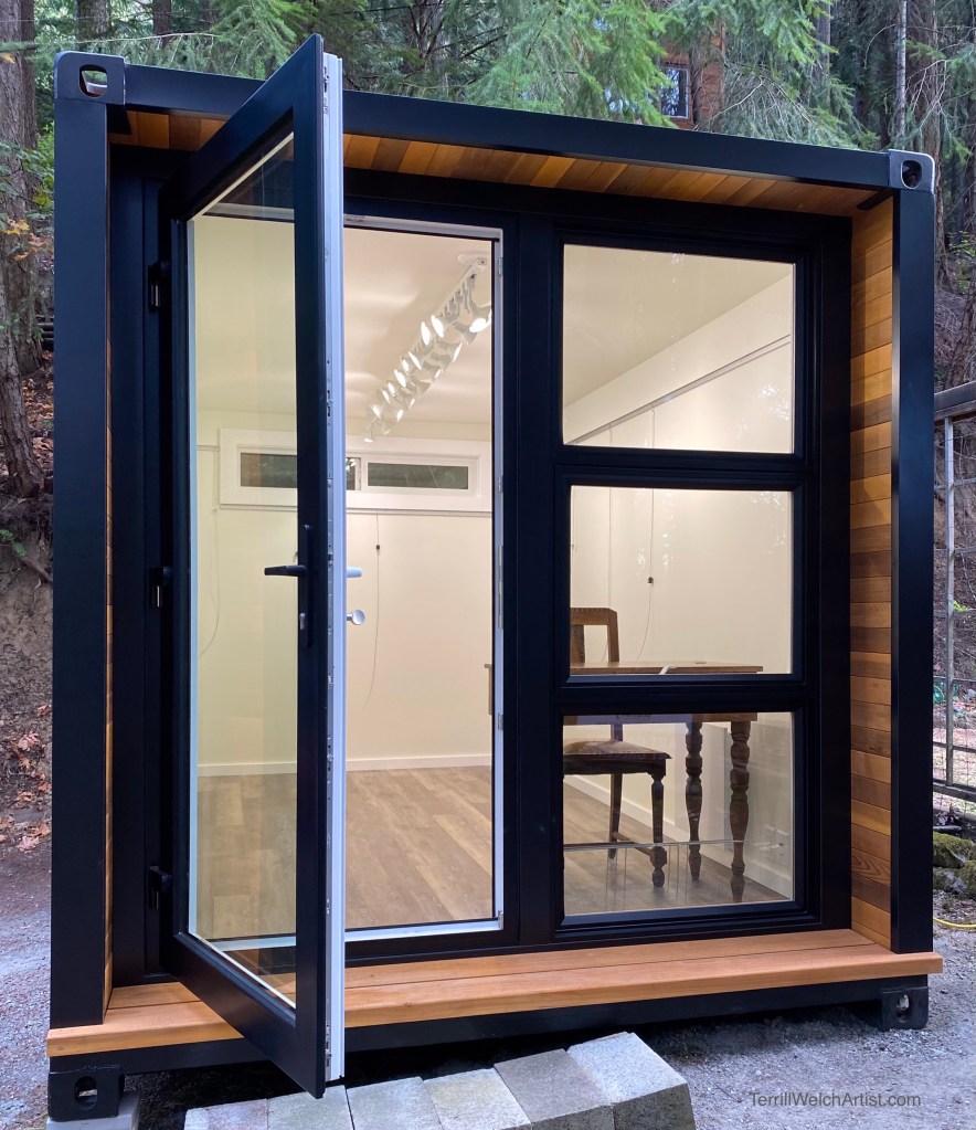 I will write an announcement for the website to publish later today or tomorrow that is specifically about what is in this first show and more about visiting. I still have a few wrinkles to work out. Like, do I want labels or just a list sheet of the paintings that people can take away with them? How much signage do I need if this is going to function as a self browsing location with assistance as desired or requested? How much landscaping should I try and get done right away around the gallery pod? Who needs a personal invite to feel like they have really been invited? Just a few things like this! I still have time. The official opening is 11-4 Thursday, September 1st through Tuesday September 6th, when we will have both the gallery pod and the home studio open for walk in visitors. After that time, it will be just the gallery pod that will be open during the fall shoulder season for walk-in 11-4 Thursday through Monday or by arrangement on other days. The home studio will remain open by advance arrangement or impromptu visits if it is possible. However, if you are in the neighbourhood between now and the official opening, it is possible to visit the gallery pod. I will turn the lights on and put the open sign out from 11-4 each day. The road signs will be put up as well. Almost! We are almost ready after nine months since I started planning. I am totally thrilled with the outcome so far but you will have to come see for yourself or get me to do a video or FaceTime visit for you.