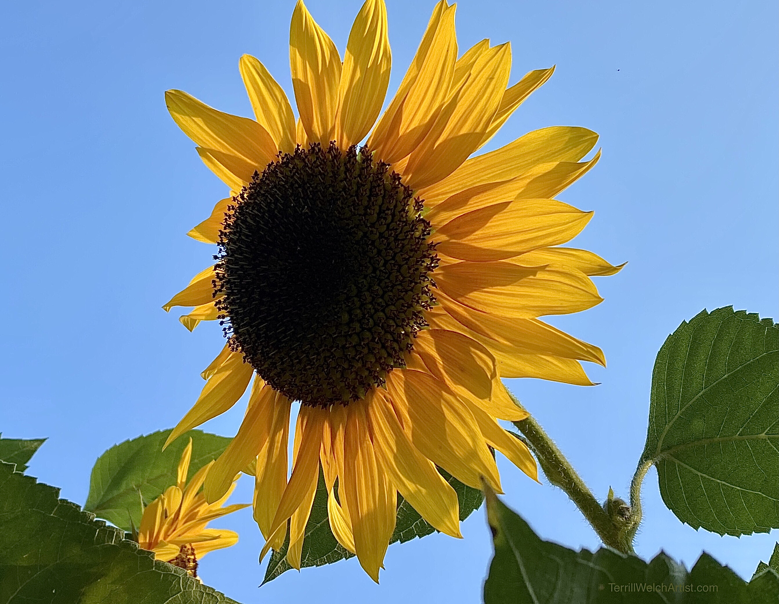 Then a little later, another art collector suggested that I come by and see their sunflowers for inspiration. They offered to pick some for me but I knew I wasn’t going get a chance to paint them right at the moment with the opening days for the Gallery Pod that also includes the home studio and our house. So I just went over and gathered a few images to enjoy in the evening light and left the flowers to create seeds for the birds. They certainly were lovely though. They feel as big, bright and cheerful as the sun itself!