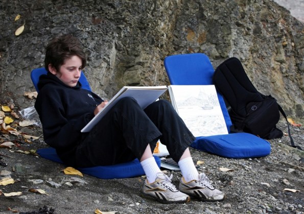 I chose the park because I wasn’t sure how people would react to my painting on the streets. However, I quickly discovered that painting is considered serious work in Dijon and many people stopped to comment, visit, ask questions and give their thumbs up of approval. My French is improving by the hour out of the pure delight and pleasure of warm conversation. The only slightly awkward moment was when a couple of oriental tourists stage-set a photograph with me. I should have seen it coming but only had enough time to look up and smile as the woman laughed and put her arm around my shoulders and her husband’s face disappeared behind his iPad to frame the shot. I am not sure if one short night’s sleep can even remotely qualify me as the local Dijon artist painting in Park Darcy.