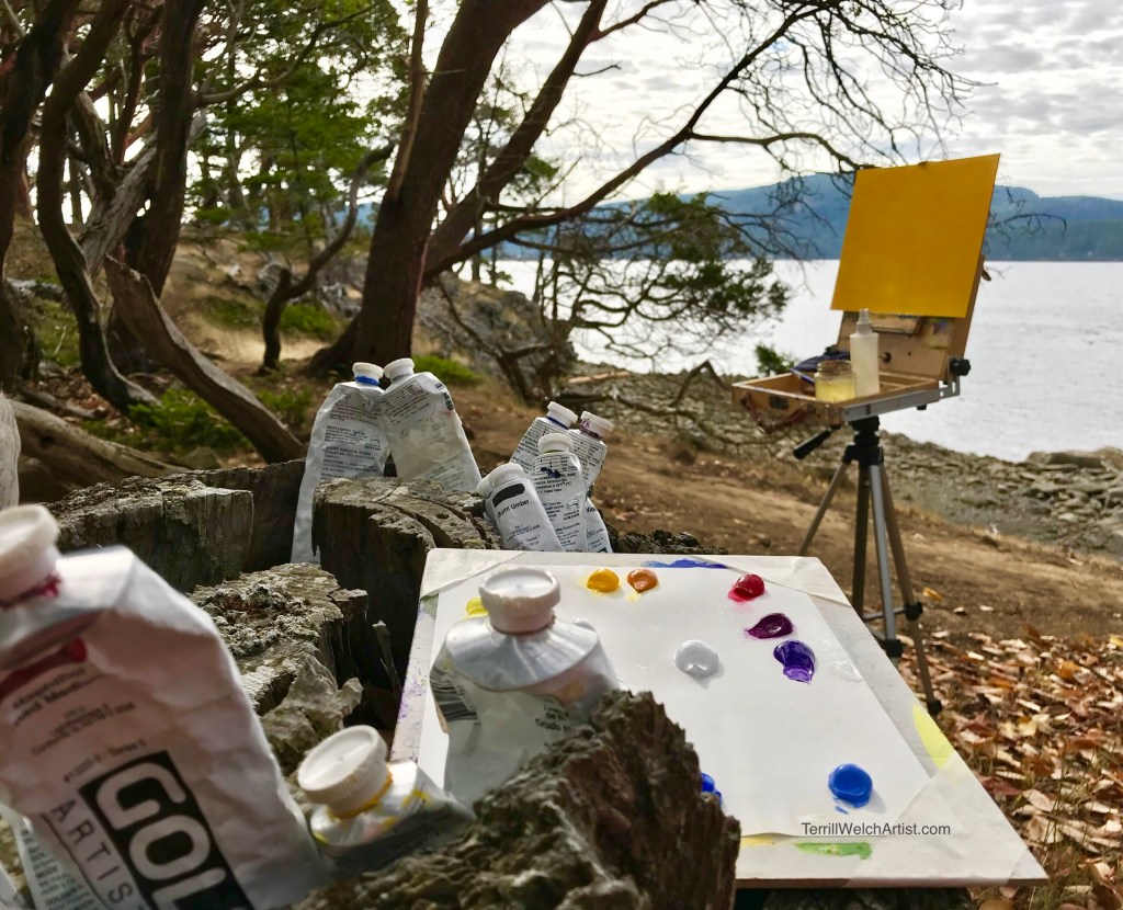 There are many more adventures to share of course but we will need to save them for another time. These plein air painting sketches and the other new works released for this next November show can be viewed in detail on my website at https://terrillwelchartist.com/2019/10/28/paintings-of-the-salish-sea/