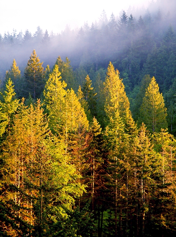 Steps away from the tunnel and it is hidden from view and the curious eye. We walk along for awhile through the trees. Coming to a power line we start to climb in altitude. There are trails leading off in all directions. Josie recounts her directions. The second outcrop or rock bluff we must turn off. Going deep into the woods we climb in and out of a creek bed. The ground is saturated and we must be careful to find firm footing. We keep walking through small openings of gary oaks and back into the big firs and cedars. We are still climbing and going deeper into the forest. We muse about whether the bears are out of their dens yet and could there be a cougar in the area. Coming onto a ridge there is a recent deer carcass almost picked clean. But no sign of anything else.