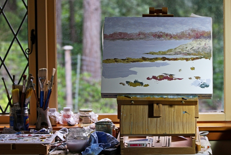 Several hours later, I am disappointed and frustrated but I must leave it to rest. I am physically tired from a full day of painting and unable to comprehend what needs to be done. Here is where the painting rested until after dinner.