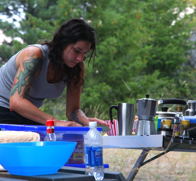 We are not to the bottom of the barrel quite yet but we are definitely down to everything from soup to nuts. It looks like we are in for a stretch of rain. I am going away for the weekend and need to deliver a package of art inventory to our local décor story and catch the noon ferry to Victoria. I still need to post and pack. So I have a choice between an image of a water-logged log or this awesome spicy eggplant soup served with heavy spelt bread and almond hazelnut butter. I thought you would prefer the soup.