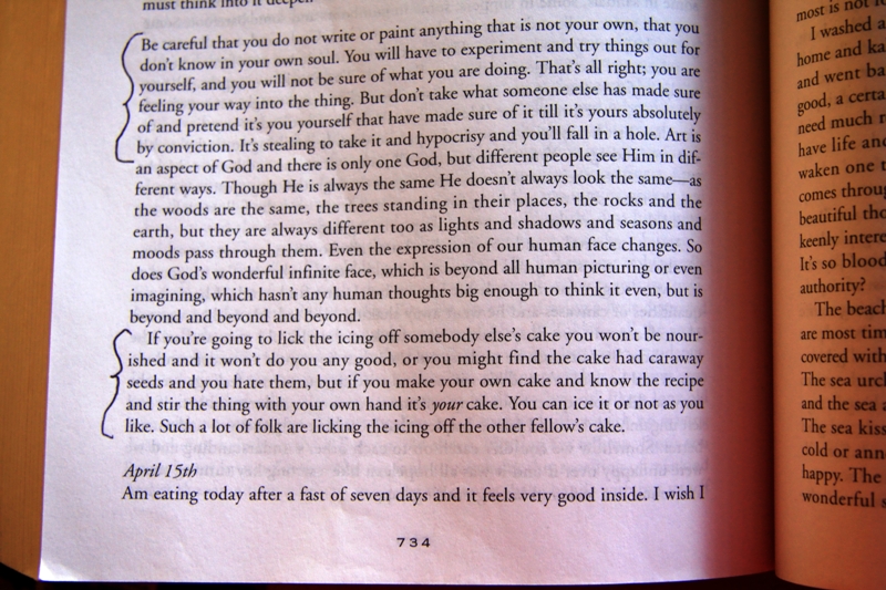 When doubts and fears about my ability as an artist threaten to keep my brushes from the paint or my fingers from pressing the camera shutter down, I read the diary pages of Carr. I know if my tears leave stains on the pages she will understand and that we will both be out of bed again in the morning, giving it another go – together.