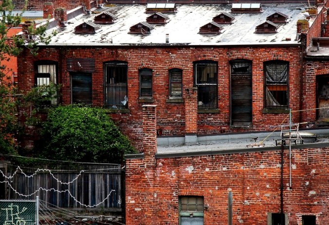 What I have for you this morning is two roof top photographs taken from my room at the Swans Hotel in Victoria B.C. Canada. These images show the topside and kind of a roof-top-back-alley view of part of old Chinatown.