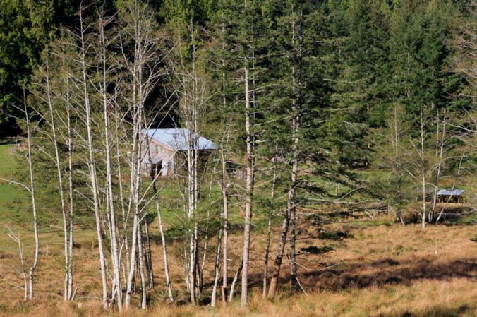 Her barn looks particularly inviting through the trees this morning.