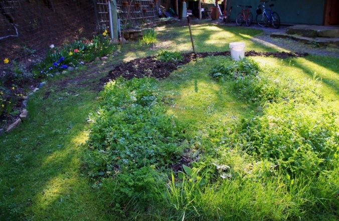 I started this yesterday. I like to do it by hand with a shovel. My planning is much like when I paint. This is the underpainting of my garden. There is no drawing or sketch for reference. I just pick up the shovel and dig in.