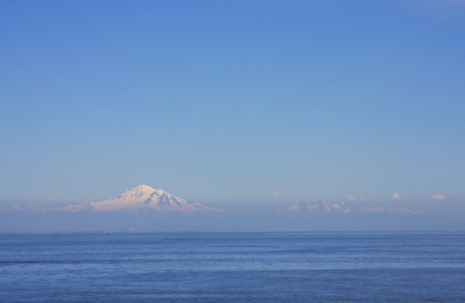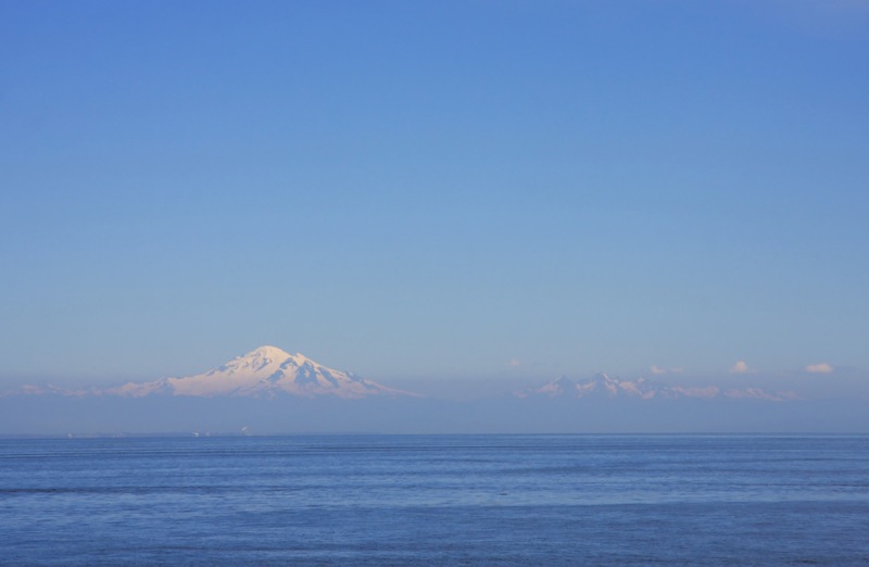 The Mill Bay sunrise with Mount Baker in the background is pleasant.