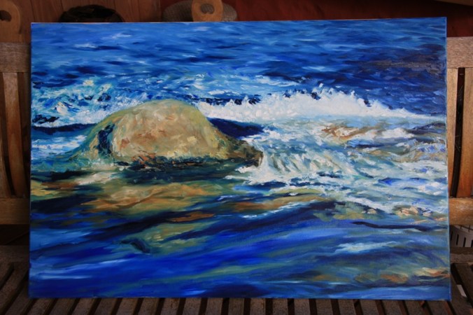ONE original impressionist 24 X 48 inch oil on canvas painting