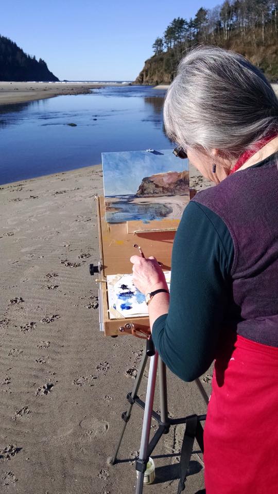 There is something about standing painting at the edge of a cliff that is irresistible! This latest adventure was no exception. Helliwell is such an incredibly beautiful provincial park… though it is a 5 km round trip with the painting gear to set up plein air in this location.