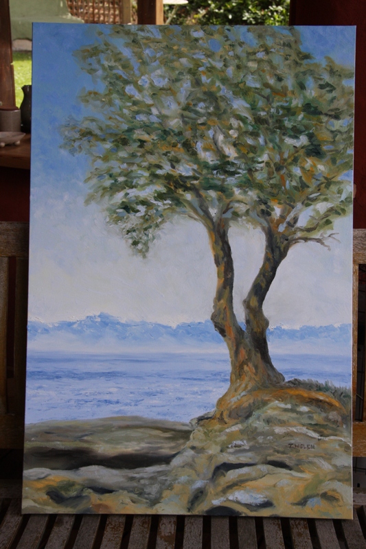 You may guess by now that I am painting my very most favourite arbutus tree overlooking the Strait of Georgia by the light house at Georgina Point. This tree will be featured in one of my photographs on the front cover of this year’s Mayne Island Community Chamber of Commerce brochure and be distributed up and down parts of the west coast of Canada and the United States.