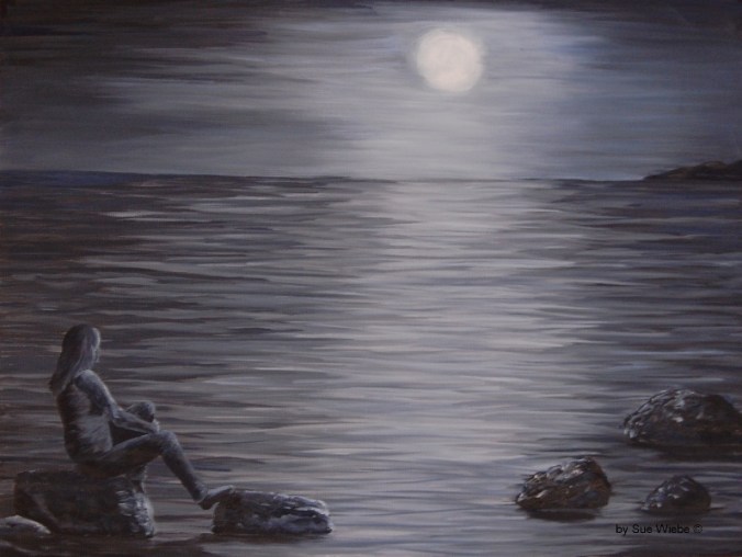 COURTNEY IN THE MOONLIGHT, 12 X 16 inch original oil painting, by Sue Wiebe